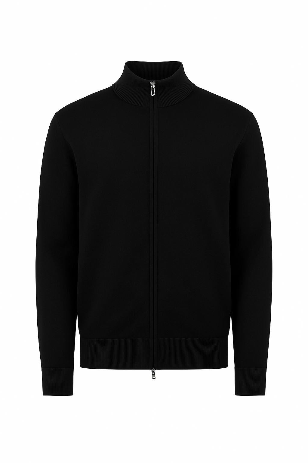 De moderne zip-sluiting met metalen rits en de subtiele ribstructuur maken de trui veelzijdig — draag hem stijlvol over een overhemd of casual op de huid.
