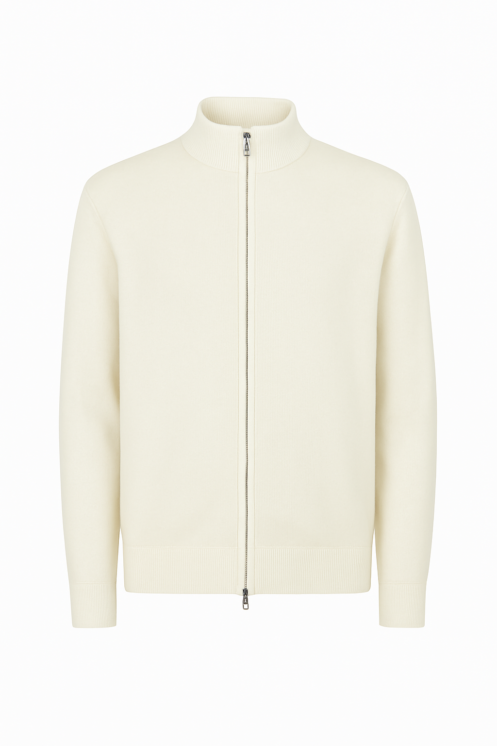 De moderne zip-sluiting met metalen rits en de subtiele ribstructuur maken de trui veelzijdig — draag hem stijlvol over een overhemd of casual op de huid.