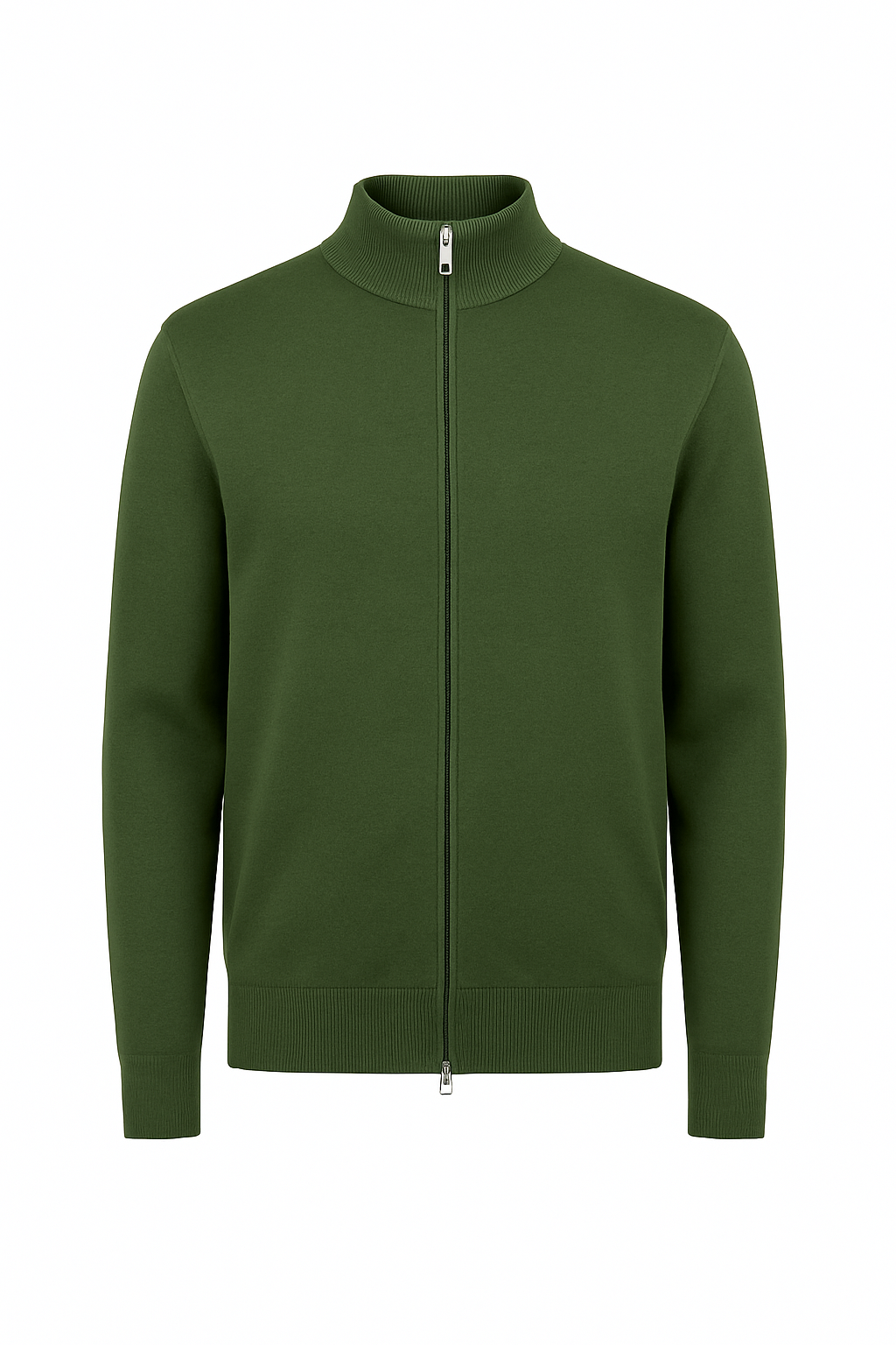 De moderne zip-sluiting met metalen rits en de subtiele ribstructuur maken de trui veelzijdig — draag hem stijlvol over een overhemd of casual op de huid.